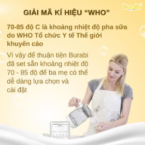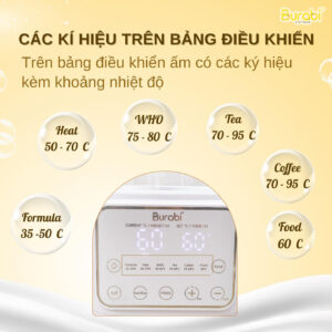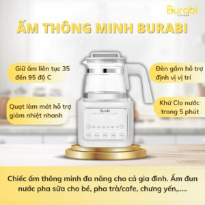 Ấm đun nước đa chức năng Burabi có thiết kế đặc biệt hỗ trợ pha sữa công thức cho bé theo nhiệt độ mà mẹ mong muốn.