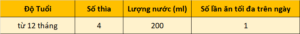 - Tham khảo bảng hướng dẫn cho trẻ ăn, đổ chính xác lượng nước ấm vào chai tiệt trùng
